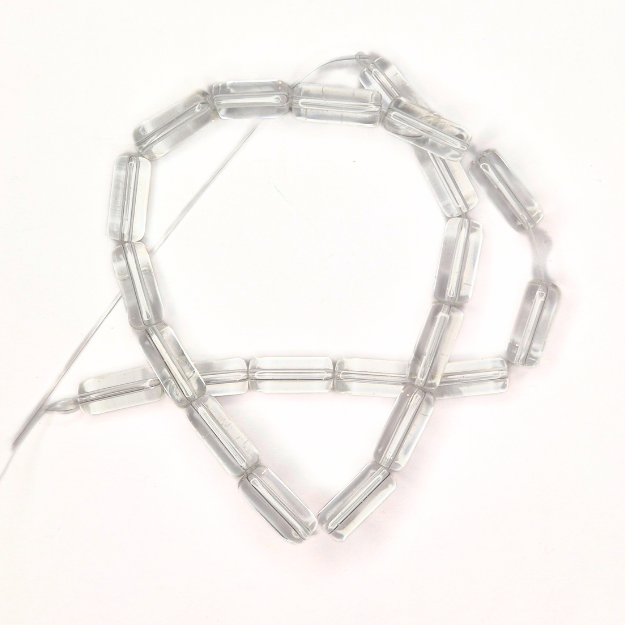 En sträng (ca 22 st) klara glaspärlor 15×6 mm (81980)