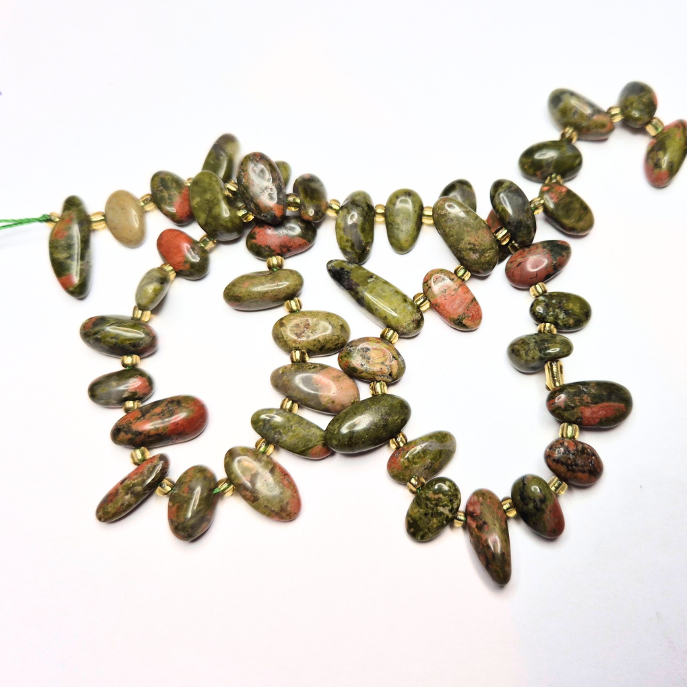En sträng (ca 45 pärlor) nuggets unakit 9,5-25×4-11,5mm