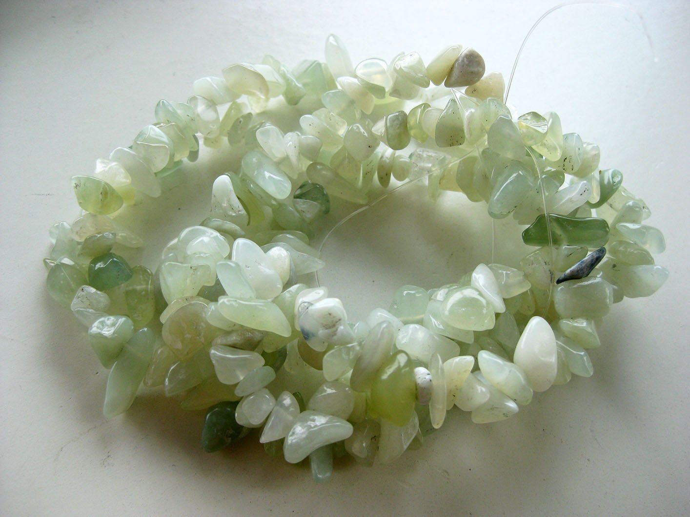 En sträng chips av naturlig jade, ca 250 stycken