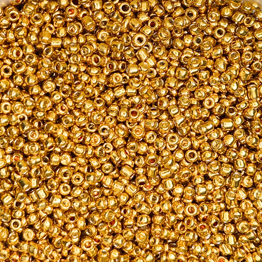 Guldfärgspläterade seed beads, 2 mm 25 gram ca 1600 pärlor